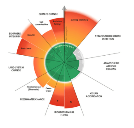 And as serious as climate change is, the ecological crisis goes beyond the climate issue alone. When looking at levels of pollution of the air, soil, sea and freshwater along with loss of biodiversity and biomass: all trends are in the wrong direction. Research led by the Stockholm Resilience Centre over the years has identified nine planetary boundaries – points that must not be passed in ecological damage, or humanity moves outside the “safe operating space” we have known for millennia into an environment that is unknown and less supportive of human welfare. At the last check-up on planetary health, six of the boundaries had been breached and one was getting close.