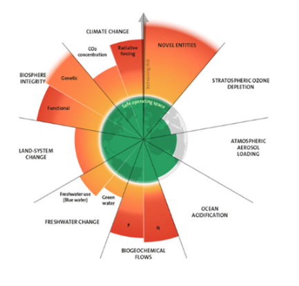 And as serious as climate change is, the ecological crisis goes beyond the climate issue alone. When looking at levels of pollution of the air, soil, sea and freshwater along with loss of biodiversity and biomass: all trends are in the wrong direction. Research led by the Stockholm Resilience Centre over the years has identified nine planetary boundaries – points that must not be passed in ecological damage, or humanity moves outside the “safe operating space” we have known for millennia into an environment that is unknown and less supportive of human welfare. At the last check-up on planetary health, six of the boundaries had been breached and one was getting close.